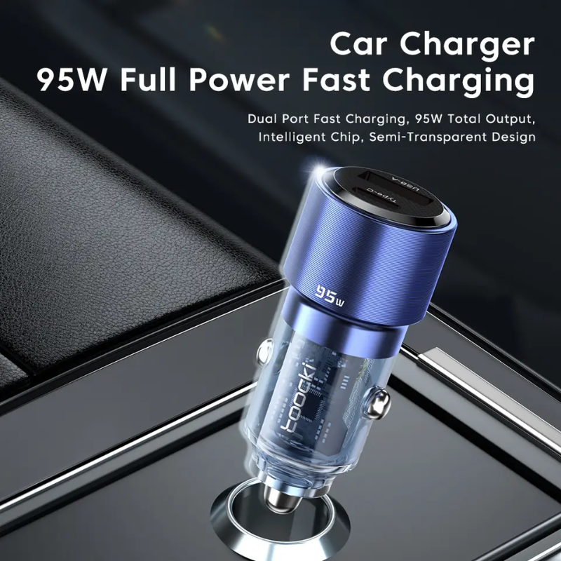 Praktisk, robust og hurtig – vores 95W hurtigopladning biloplader vil være den perfekte ledsager på dine rejser.